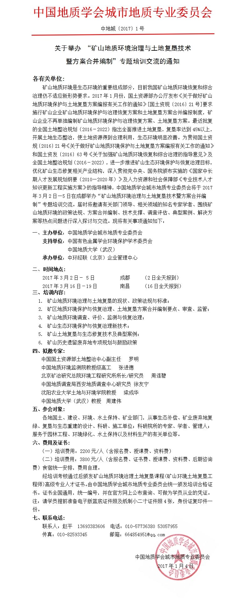 關于舉辦 “礦山地質環境治理與土地復墾技術 暨方案合并編制”專題培訓交流的通知