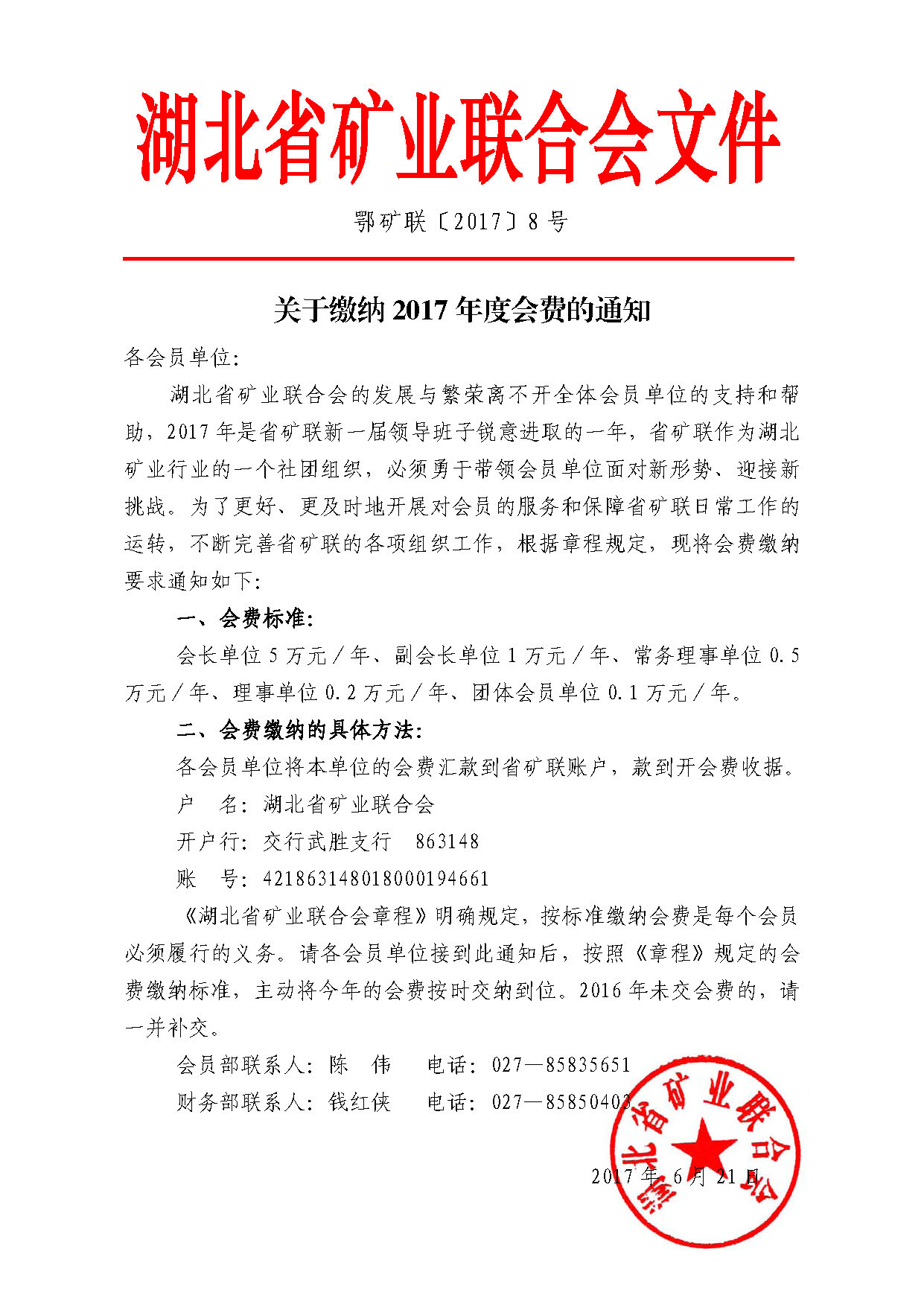 省礦聯(lián)關(guān)于繳納2017年度會費(fèi)的通知