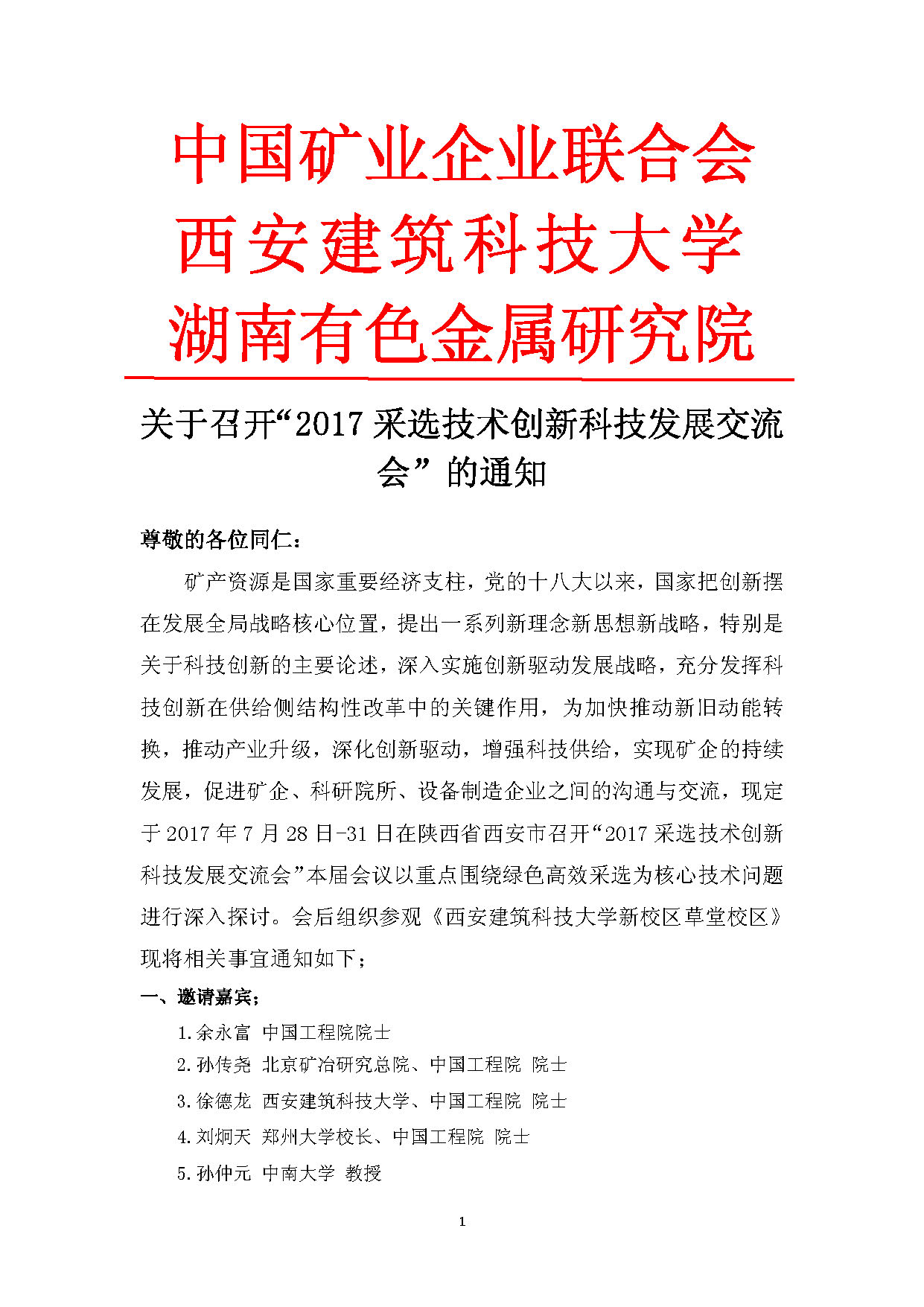 關(guān)于召開“2017采選技術(shù)創(chuàng)新科技發(fā)展交流會(huì)”的通知