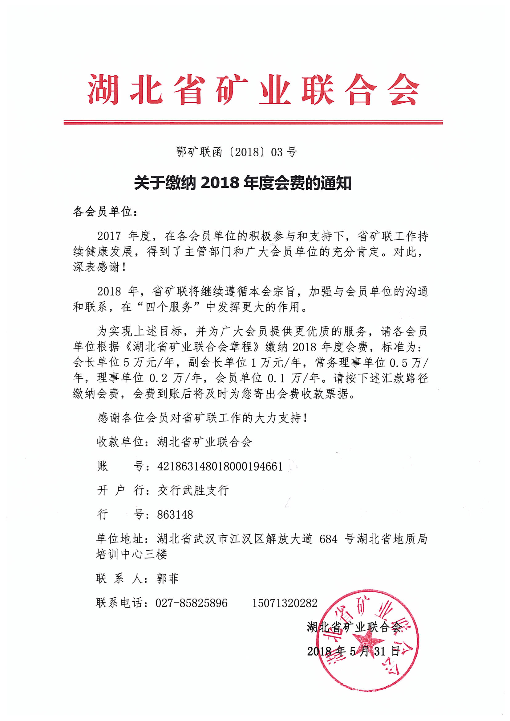 關于繳納2018年度會費的通知