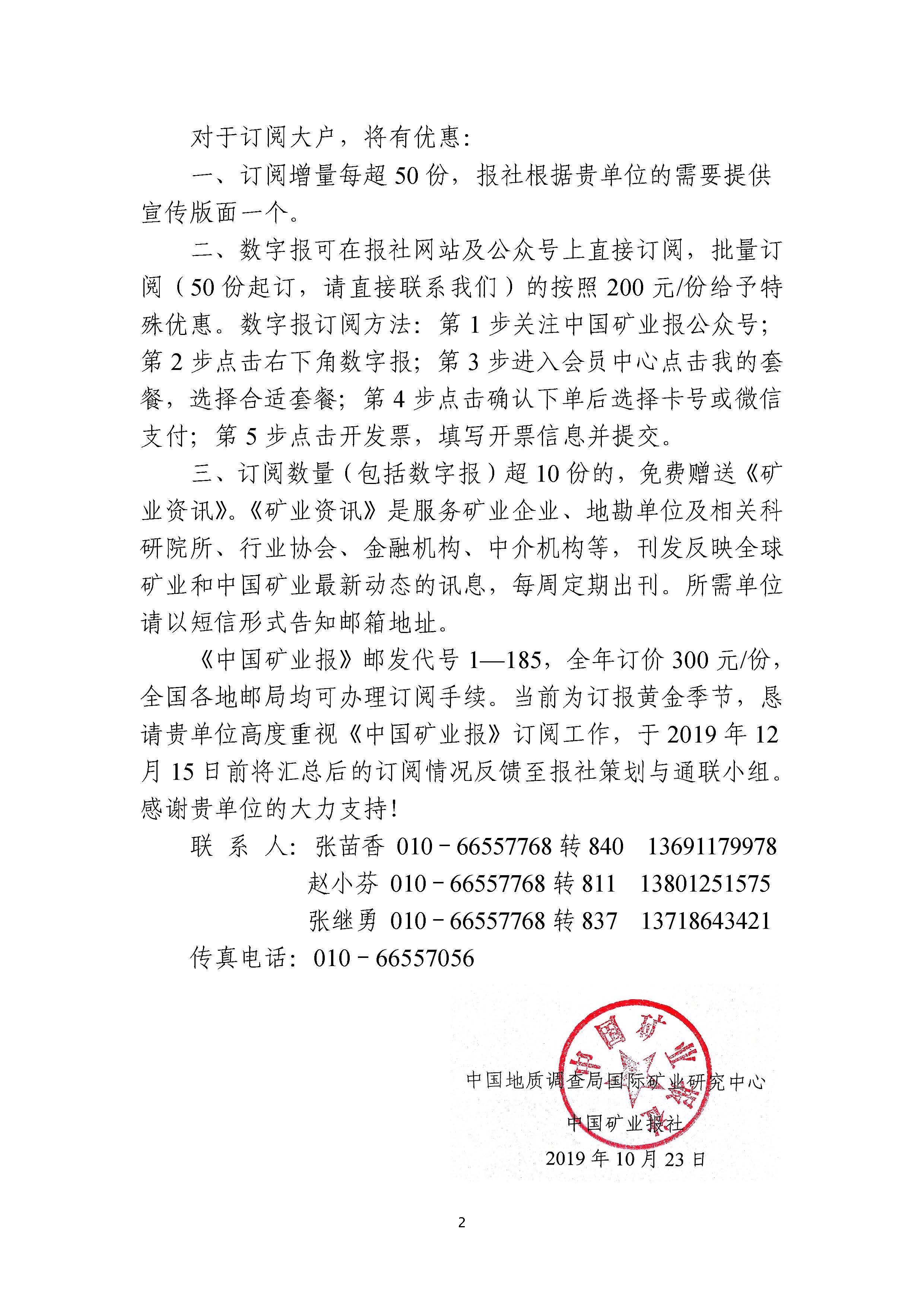 關于做好《中國礦業報》訂閱工作的函