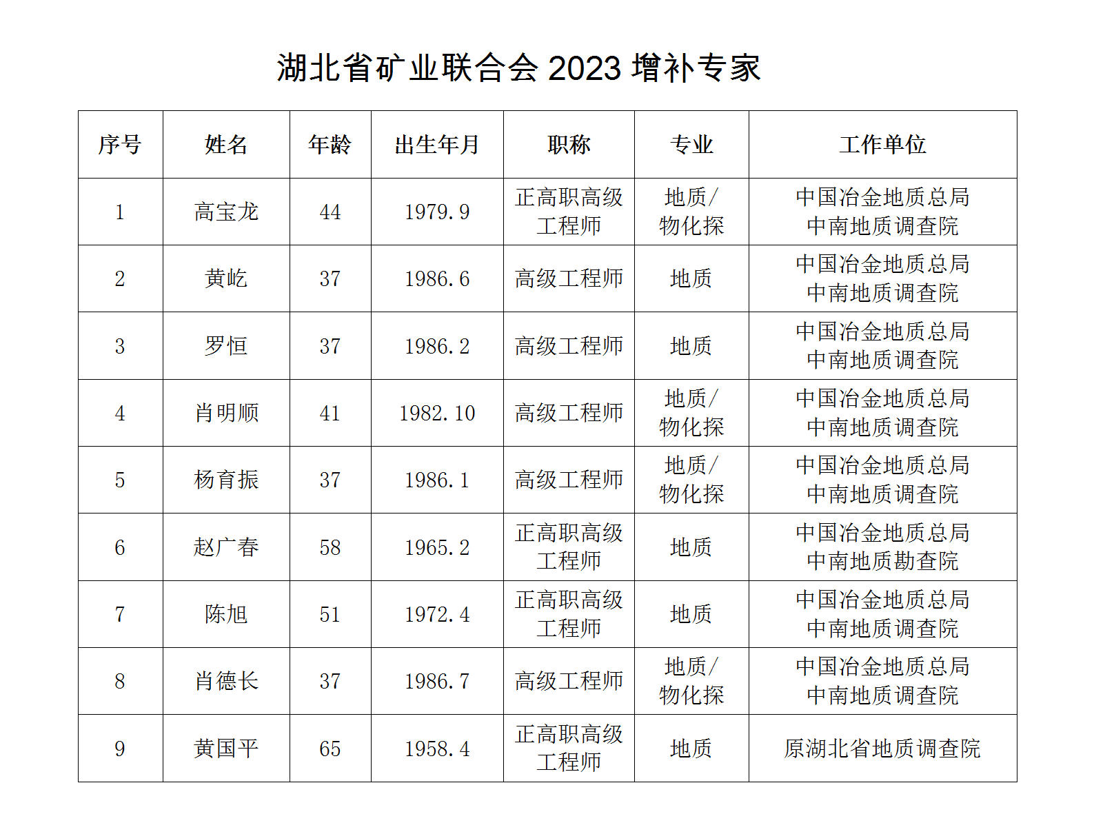 湖北省礦業(yè)聯(lián)合會2023增補專家公示