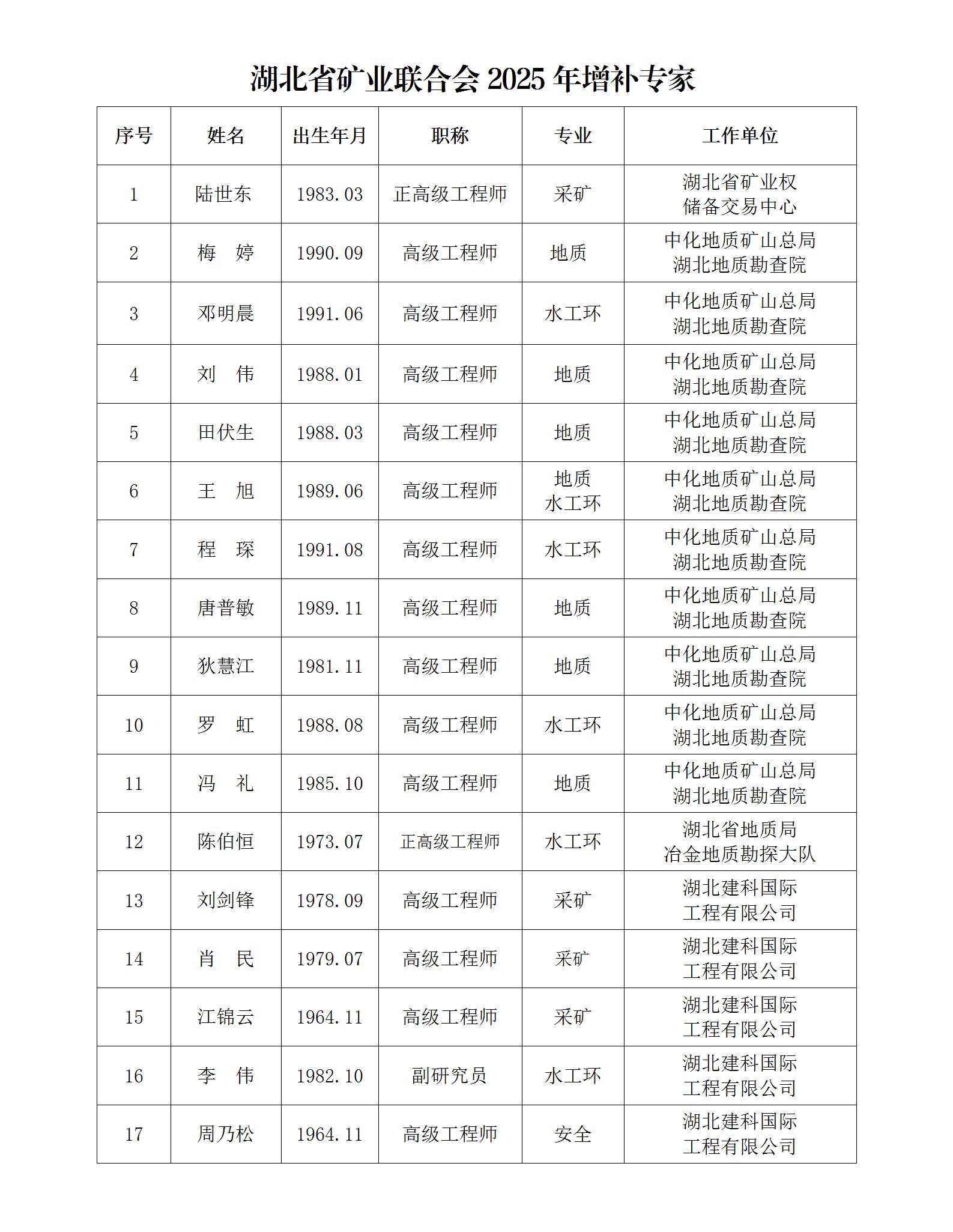 關于增補17名專家納入 湖北省礦業聯合會專家庫的公告